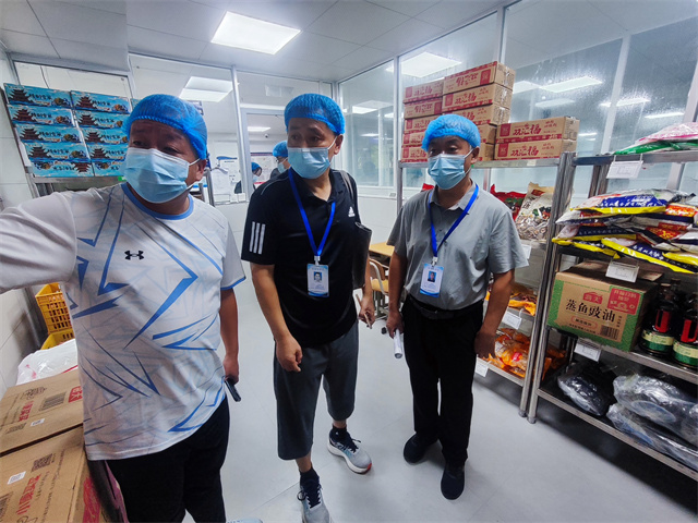 在学校食堂,两位督学对储物间、分餐区、烹饪间、餐厅等重点区域进行逐一检查,了解食堂人员数量、食材采购制作流程、学生错时就餐程序、领导陪餐等情况,查看管理制度和规范操作情况,提醒食堂负责人员一定要把好食品安全关,为师生提供安全放心的饮食。