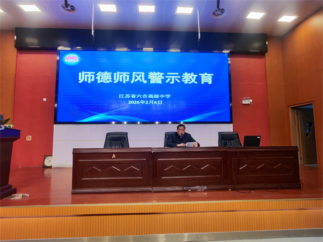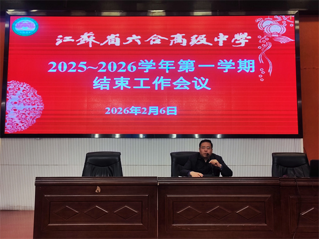 岁聿云暮,学期将阑。为全面总结2025—2026学年度第一学期学校各项工作成效,部署假期及下学期工作任务,进一步凝聚全校教职工共识、提振工作干劲,2月6日下午,江苏省六合高级中学在艺术馆报告厅召开学期结束工作会议。党委书记徐爱民主持会议并讲话。