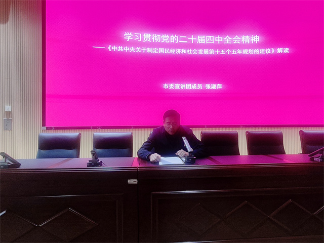 宣讲会上,张淑萍教授围绕习近平总书记在党的二十届四中全会上的重要讲话和审议通过的“十五五”规划建议,结合实际,从充分认识“十五五”时期在基本实现社会主义现代化进程中的重要地位、深刻领会“十五五”时期经济社会发展的指导方针和主要目标、准确把握“十五五”时期经济社会发展的战略任务和重大举措和坚持和加强党的全面领导,凝聚起推进中国式现代化的磅礴力量等四个方面,对全会精神进行全面宣讲和深入阐释。