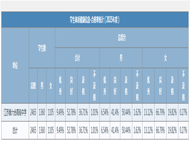2025学生体质健康测试四率统计(优秀率、良好率、合格率和不及格率统计)