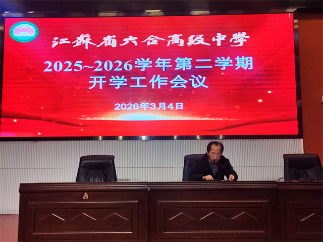 3月4日上午,江苏省六合高级中学在艺术馆报告厅召开2025—2026学年第二学期开学工作会议,全面部署新学期工作。会议围绕学生健康第一理念,统筹推进德育、教学与后勤协同发展,构建高质量教育新生态。校长孙贻勇主持会议并讲话。