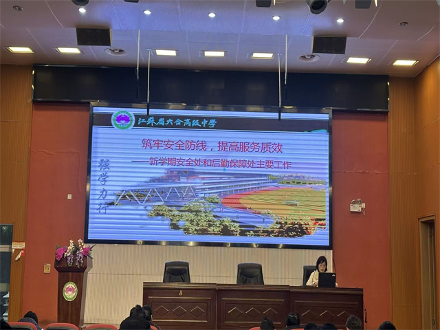 规范 提质 赋能》为题,提出了本学期教学工作的总体目标与年级聚焦核心,要求强化教学常规,深化教研活动,技术赋能教学,加强课程与竞赛体系建设,促进教学提质增效。刘丽云副校长以《筑牢安全防线,提高服务质效》为题,布置了本学期安全处和后勤保障处的重点工作,强调要优化管理机制,加强校园安全管理,不断提升服务质效。