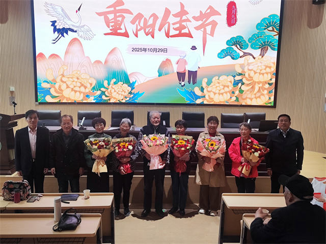 随后,学校举行了70、80、90岁退休老同志的集体祝寿活动。徐爱民书记宣读了过集体生日的8名退休教师名单,并和孙贻勇校长共同为老同志赠送鲜花、颁发纪念品,合影留念。活动现场,气氛温馨融洽,老教师们精神矍铄,畅叙情谊,共话往事,互致问候。