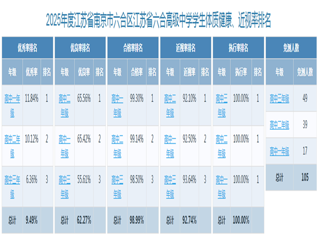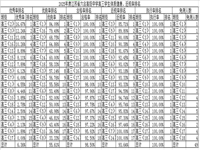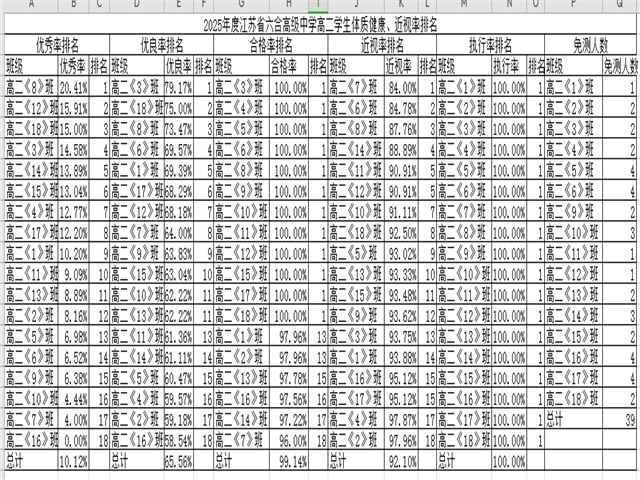2025学校总体体质四率统计排名和各年级班级之间排名